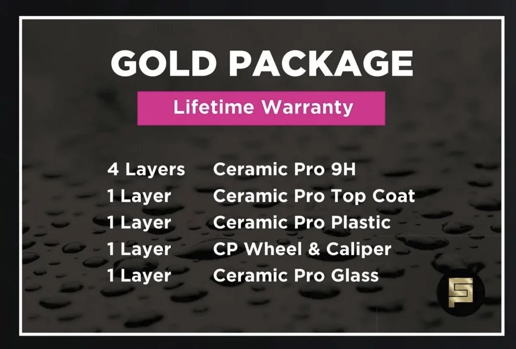 The Ceramic Pro Bronze Package, also known as our 2-Year Package, is an excellent value for those looking to protect their investment. It consists of one layer of Ceramic Pro Top Coat on the vehicle, one layer of Ceramic Pro Wheel & Caliper on the rims and plastic surfaces, and one layer of Ceramic Pro Glass on the front side windows and the windshield. A two-year warranty backs the Bronze Package.